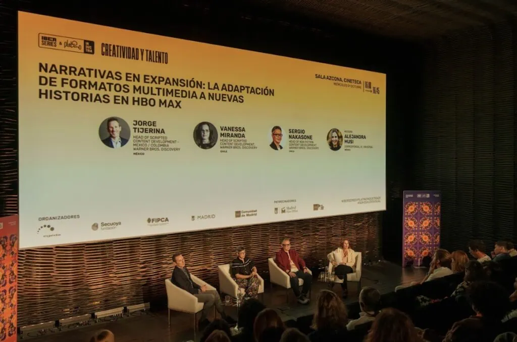 La sesión “Narrativas en expansión: la adaptación de formatos multimedia a nuevas historias en HBO Max”, celebrada en la Sala Azcona (Cineteca), reunió a los responsables de desarrollo de contenidos de Warner Bros. Discovery en América Latina para analizar cómo surgen y se transforman las ideas en el competitivo mundo del streaming.
